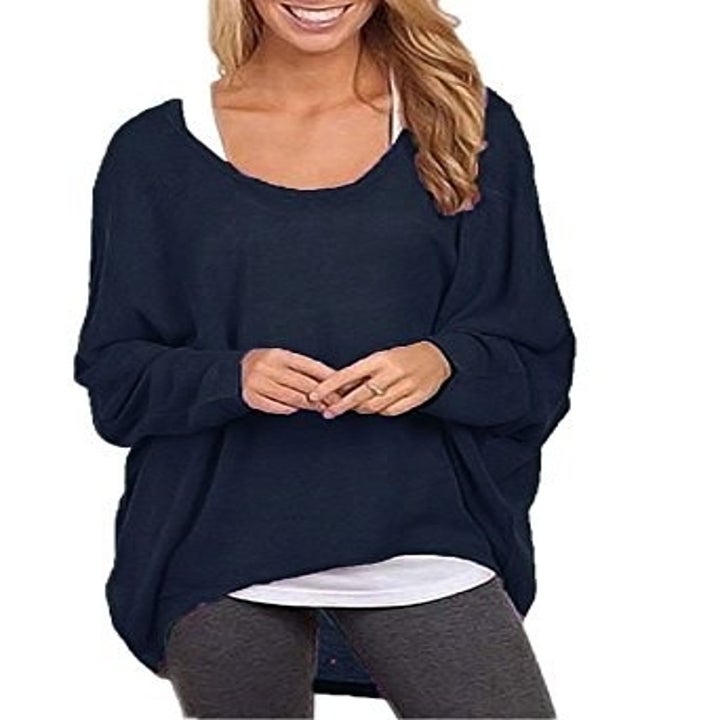 Promising Review: "I ordered an XL instead of my typical L due to several reviews claiming a slightly smaller fit. I wanted the fit to mimic that of the photo, so I ordered up. Don't do what I did! Order your normal size! It wasn't horrible but definitely approaching the frumpy look. Cute tho! Goes great with boots. Sleeves do not bag out. Veryyyy comfy!" —Theresa Lester